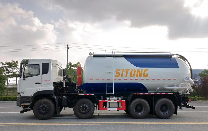 東風天龍前四后八立式干混砂漿運輸車結構特點:液壓舉升氣懸浮錐體料倉缷料系統。該款干混砂漿運輸車采用模塊化設計,整體沖壓車架,增加柔性連接設計,組合式連接,有效避免惡劣路況的沖擊;整車舉升卸料,尾部錐型卸料系統產生振動,出料速度達到1.6噸/min,同時在卸料過程中進行二次攪拌,完美解決了干混砂漿運輸、卸料全過程中影響干混砂漿質量的離析問題;可以說東風天龍前四后八立式干混砂漿運輸車是吸收國外同類產品先進技術而研發的,目前位于國家尖端砂漿車技術行業。下面是詳細參數: