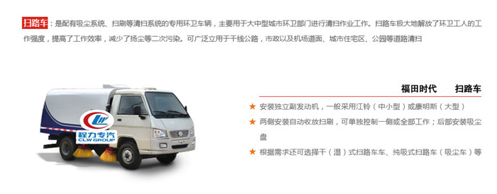 標準:道路清掃車:新一代環保、洗 掃 吸 結合式道路清掃專用車輛,主要適用于城市街道、市政廣場、大型廠礦的機械化清掃保潔作業,整車作業效率高,技術性能先進可靠,主要部件全部采用純進口件,造型美觀,實用性強。 |