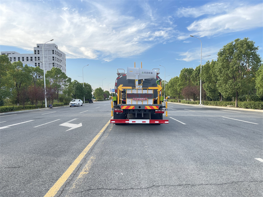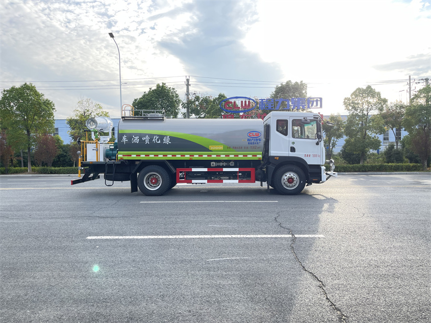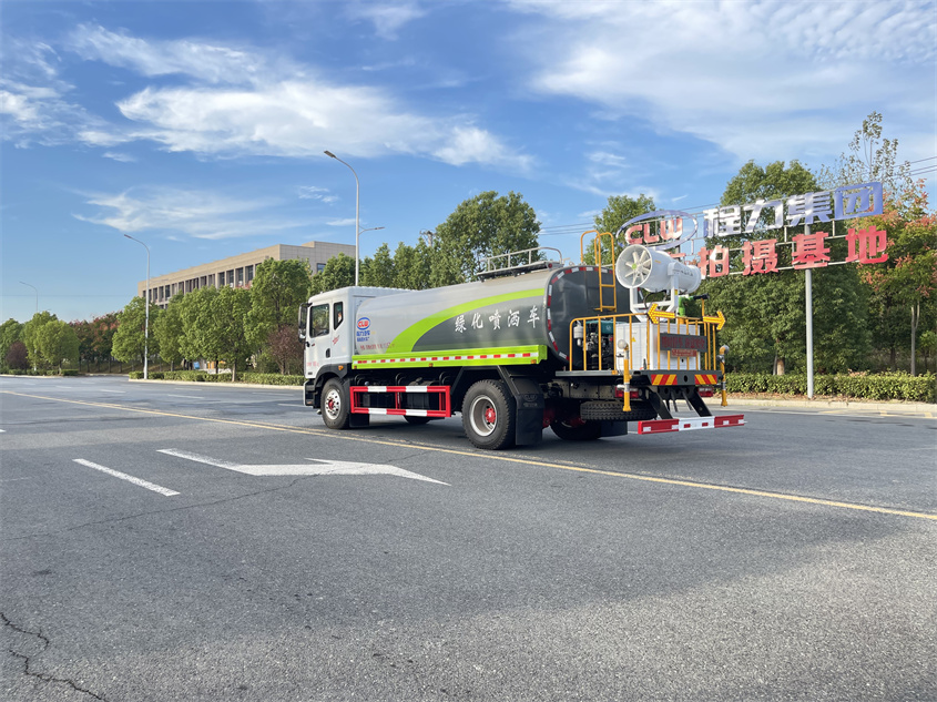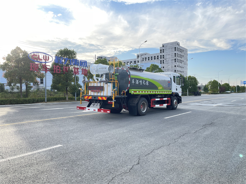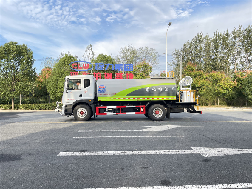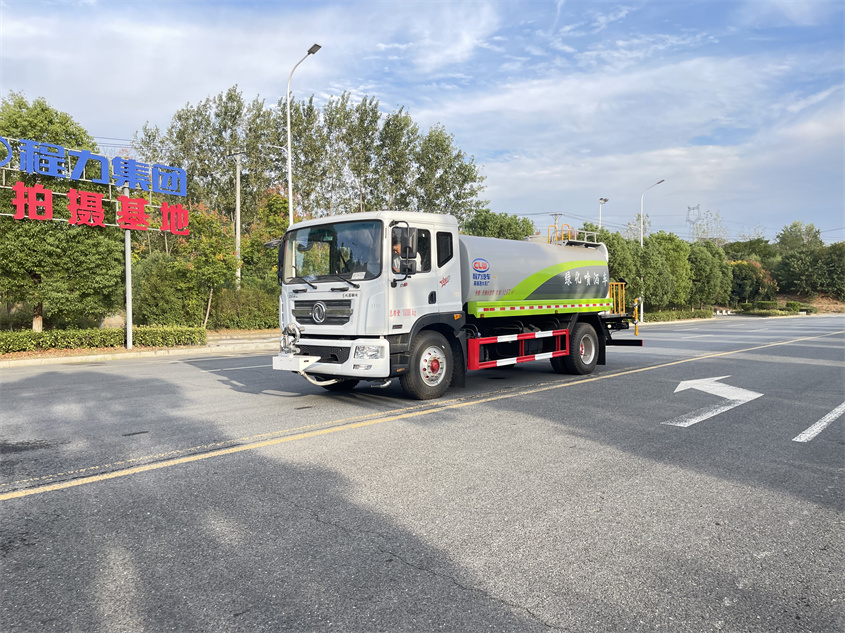 東風15噸多功能抑塵灑水車整車配置:東風D9車身,康明斯6缸230馬力渦輪增壓發動機,法士特8檔變速箱,前橋5噸,后橋10噸;10.00R20后雙輪鋼絲胎,空氣懸架真皮座椅;原廠冷暖空調,中控門鎖,電動門窗,LED日間行車燈。罐體4mm厚武鋼專用罐式板制作,實際容積15立方,罐內加裝隔板具有防波作用,以減低汽車行駛時罐體液體的沖擊。大功率杭州威龍水泵;泵進泵出;DN80主出水管,消防栓接口,前沖、后灑、側噴、后工作平臺帶綠化水炮,垂直吸程≧7米,灑水寬度≧14-18米,射程≧20-25米,引水時間<5min,流量90m3/h。鍍鋅沖孔后工作平臺帶30米S彎高壓水炮,全車316不銹鋼大通徑球閥;自流閥、不銹鋼濾網、帶自吸自排功能。兩根等長輸水管,電泳金屬漆,其余標配。可選裝非車帶泵動力不銹鋼罐體等。