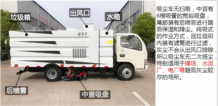 1.采用負壓純吸原理,徹底解決二次揚塵污染,讓清掃車不再是“揚塵車”。