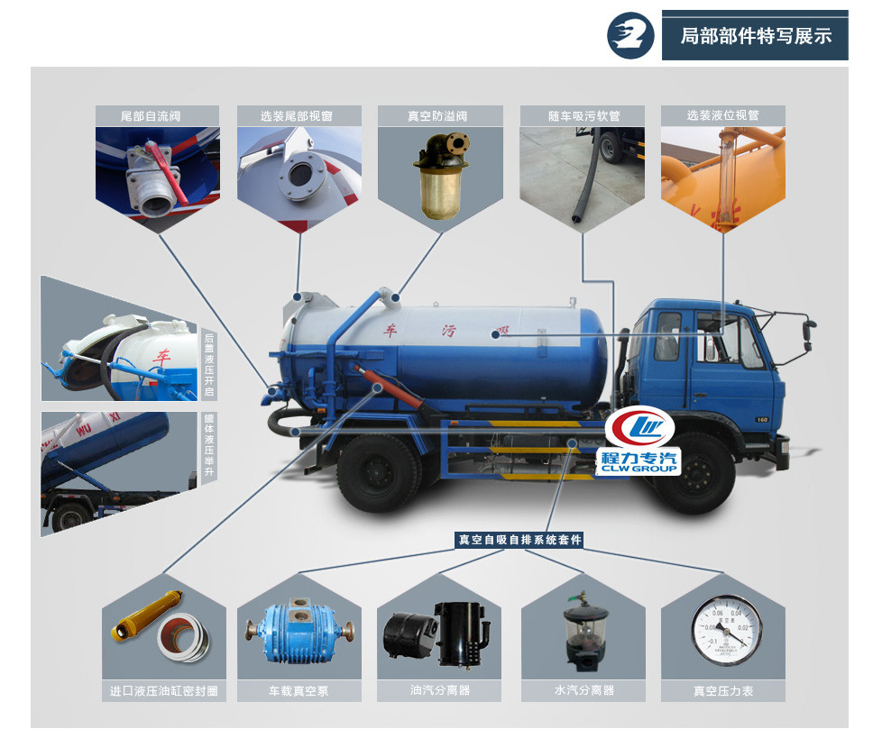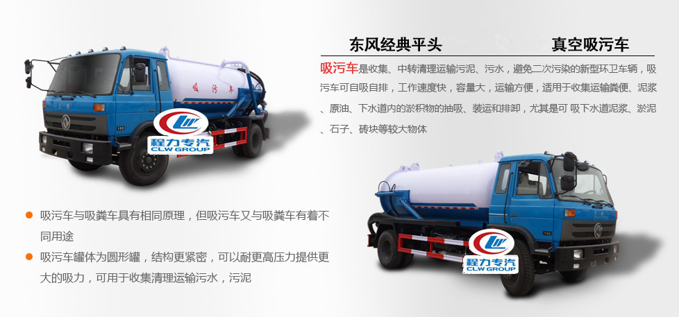 東風(fēng)145吸污車罐體形狀為圓柱形,采用武鋼6mm厚優(yōu)質(zhì)碳鋼鋼板,罐體前部帶吸污窗,洗手裝置,舉升裝置,吸污管5米一根,罐體多種顏色選擇,其余按廠內(nèi)標(biāo)準(zhǔn)配置制作。隨車配置大功率真空吸污泵和優(yōu)質(zhì)液壓系統(tǒng),罐體封頭一次壓鑄成型、罐體可后開、雙頂自卸。罐內(nèi)污物可通過(guò)后蓋直接傾倒,具有真空度高(比吸糞車的吸力更大)、噸位大、效率高、用途更廣泛的特點(diǎn)。(垂直吸程:≥8 m,工作壓力:8500Pa,理論抽速:120L/S,軸功功率:≤13kw,進(jìn)排氣口徑:50mm,抽滿罐時(shí)間:<5 min,排滿罐時(shí)間:<4min。吸污車采用大功率真空泵,一次壓鑄成型的封頭-,加厚的抗壓罐體,雙頂液壓系統(tǒng),是比吸糞車功能更強(qiáng)大的車型。